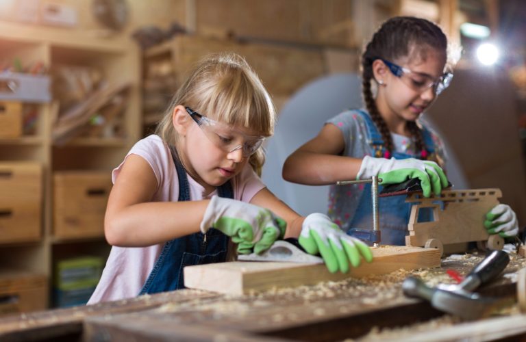 In unseren Workshops lernen sie den sicheren Umgang mit Werkzeugen und entwickeln ein Gefühl für Material, Kreativität und Selbstvertrauen.